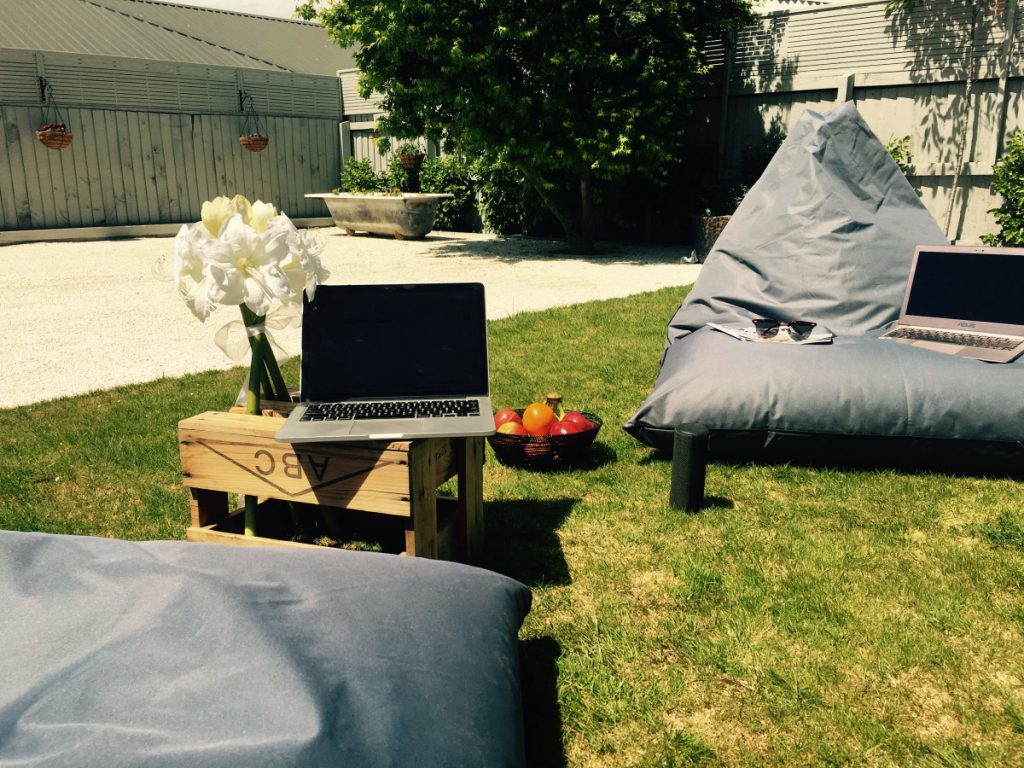 - A great working spot on the back deck/garden area
