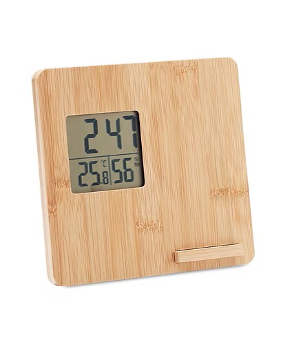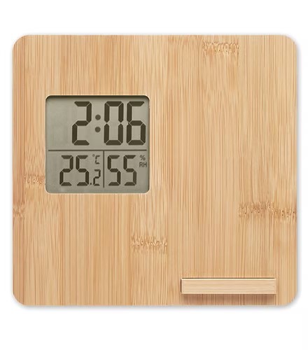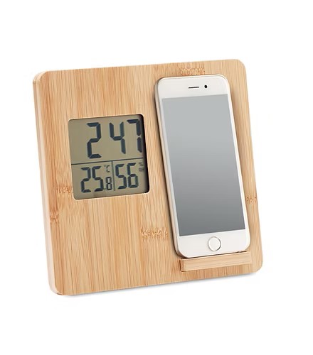 Enhance your workspace with our 10W Wireless Charger Device, a multifunctional accessory that combines convenience and natural elegance. This device features a time, temperature, and humidity display, making it a practical weather station for your desk. The bamboo casing adds a touch of natural beauty and sustainability to your office or home.