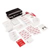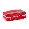 This first aid kit provides essential first aid supplies for all activities, packed in a heavy duty bag with reflective strip and external pocket, inside has multiple compartments and black mesh zipper pockets. OSH compliant. Contents: 1 x triangular bandages, 4 x adhesive bandages H shape, 5 x adhesive bandage, 1 x conforming bandage, 1 x thick PBT bandage, 1 x paper tape, 1 x adhesive strip, 4 x non woven sponge, 1 x mouth to mouth mask, 3 x cleansing wipes, 3 x soap wipes, 6 x safety pins, 1 x scissors, 1 x tweezers, 1 x safety gloves, 1 x emergency blanket, 1 x first aid information.