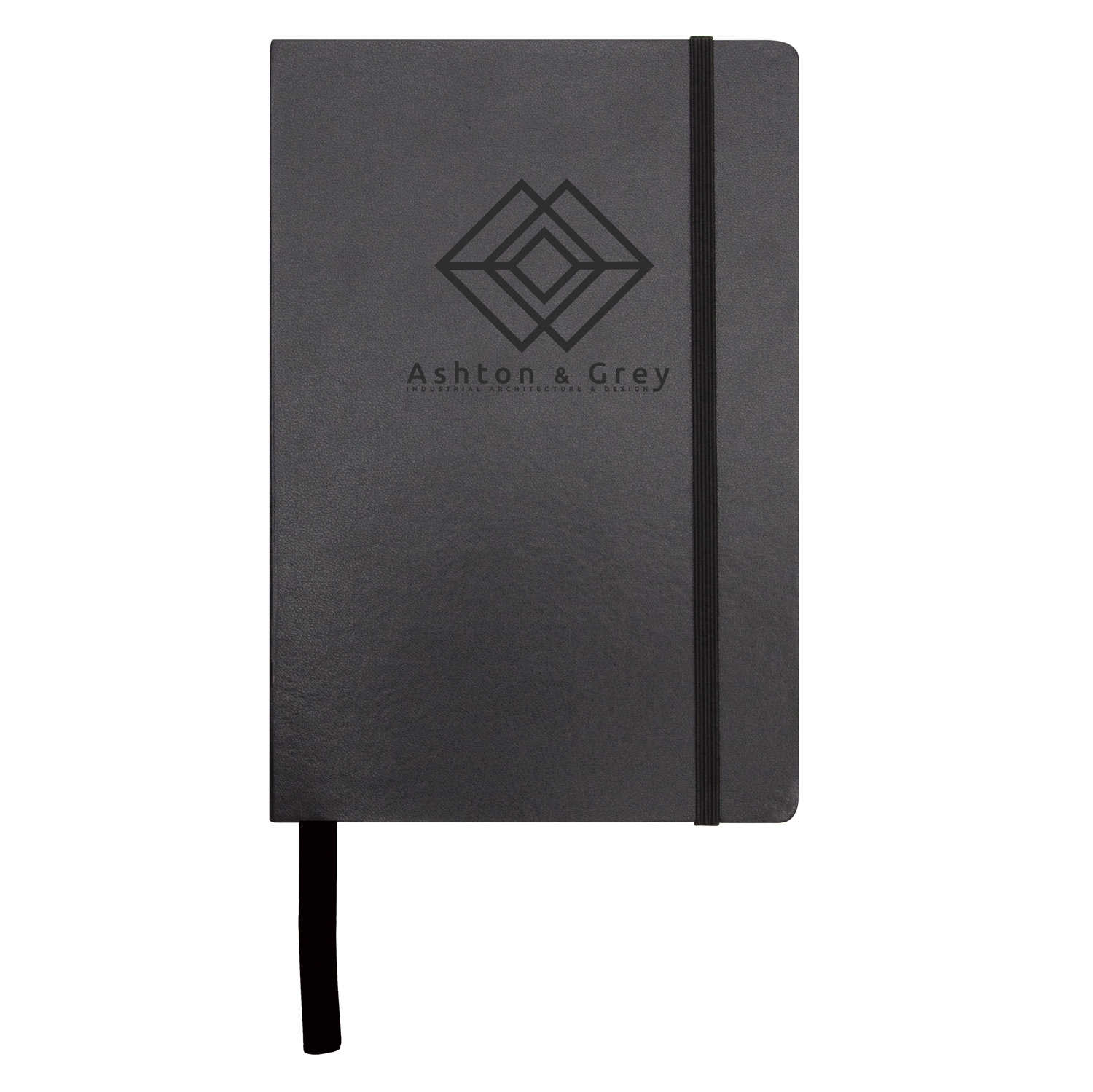 The City A4 Notebook in black is perfect for the office or home use. Its bonded leather-look cover gives it a professional and stylish appearance, making it a great choice for corporate gifts. It has 80 sheets of cream-lined pages and an expandable pocket at the back, perfect for storing loose papers. The notebook also comes with a ribbon marker and elastic band to keep your notes organized.