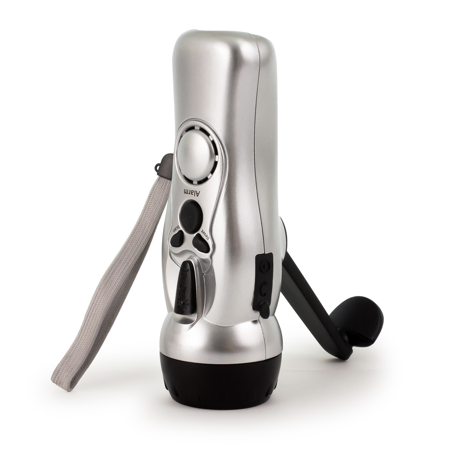 Meet the Dynamo Radio Torch with Siren & Charger, a must-have for outdoor enthusiasts and emergency situations. This rainproof radio eliminates the need for batteries and features a 3-LED torch and siren—perfect for camping, hiking, and emergencies. Equipped with a mobile phone charger, it ensures you stay connected even off the grid, with the USB charging cable providing easy device charging anywhere.