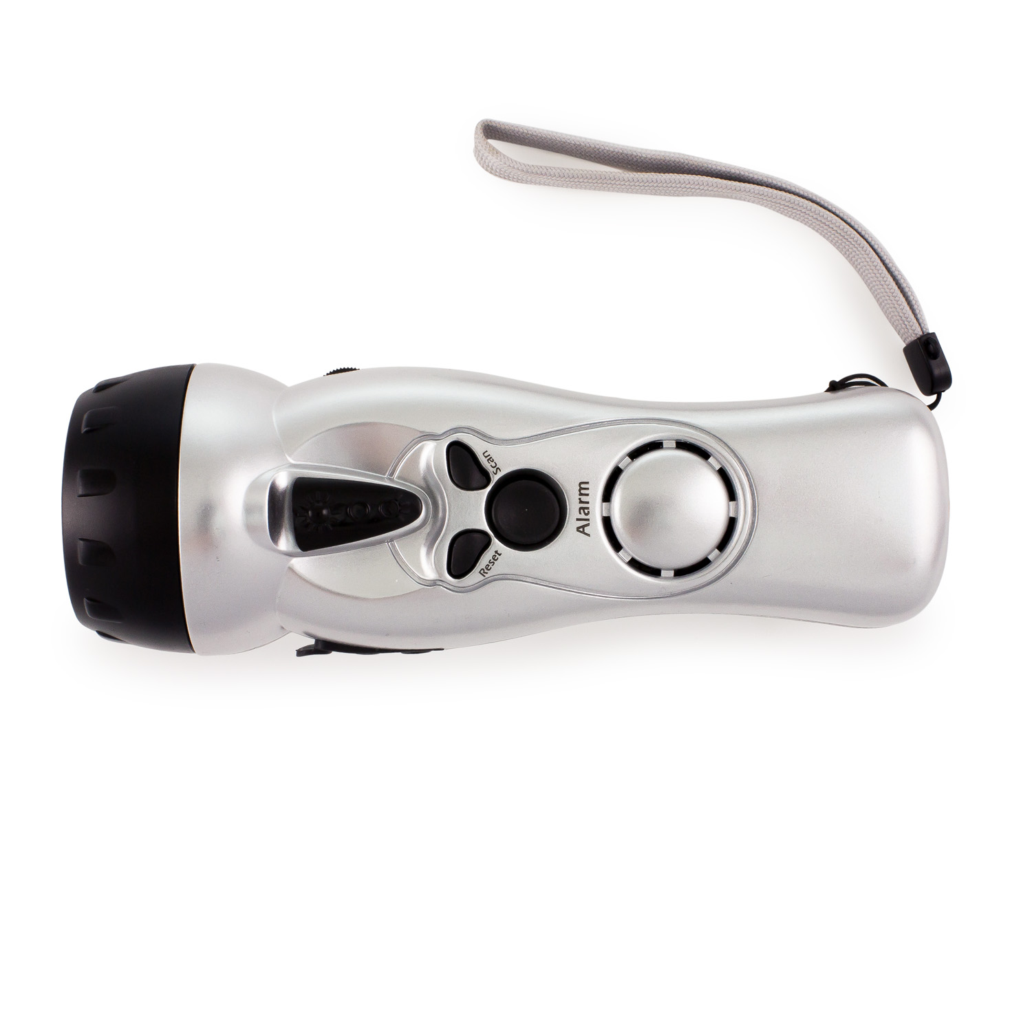 Utilizing the dynamo function, this device allows for winding to charge the radio and torch. Just 3 minutes of winding provides 2-8 minutes of talk time or 20 minutes of light in just 1 minute, making it highly reliable for emergencies. Compact at 176 x 60 x 58mm and sleek silver, it’s easy to carry, while the durable plastic construction withstands harsh conditions.