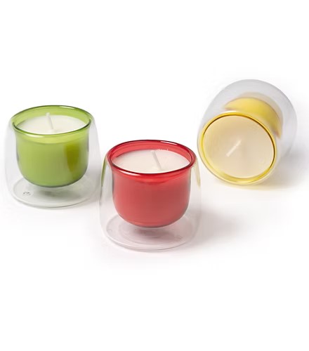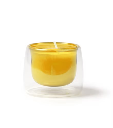 Scented candle in a double-layer glass recipient. Vegetable wax with vanilla aroma. Presentation in eco design box