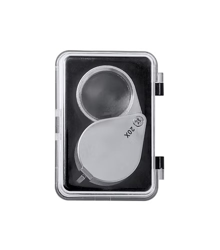 Introducing our 20x folding magnifier, a precision tool crafted from durable metal for longevity and reliability. This magnifier is designed for enthusiasts and professionals who require an exceptionally close view of the minutest details without any distortion. The 20x magnification power is perfect for inspecting tiny objects, texts, and intricate details that require keen observation.
