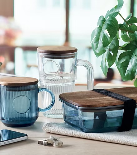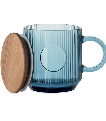 Ribbed glass mug with acacia lid. Capacity: 300 ml. FSC®-certified | FSC 100%, W16.3, FSC-C213206