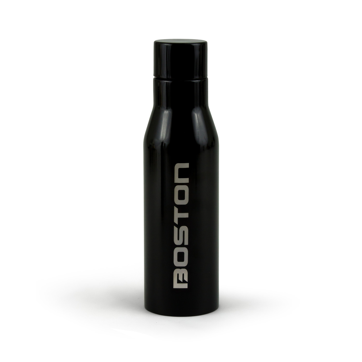 • Stay hydrated in style with the sleek and modern Boston Thermo Bottle. This 500ml bottle boasts double-walled vacuum insulation with a copper coating, keeping drinks cold for up to 24 hours and hot for up to 12 hours. Its ergonomic design ensures a comfortable grip, while the non-toxic, BPA-free materials guarantee freshness and safety. Designed to prevent water from beading on the outside, it keeps hands and belongings dry. The wide mouth allows for easy ice cube insertion and drip-free sipping. Packaged in a black box.