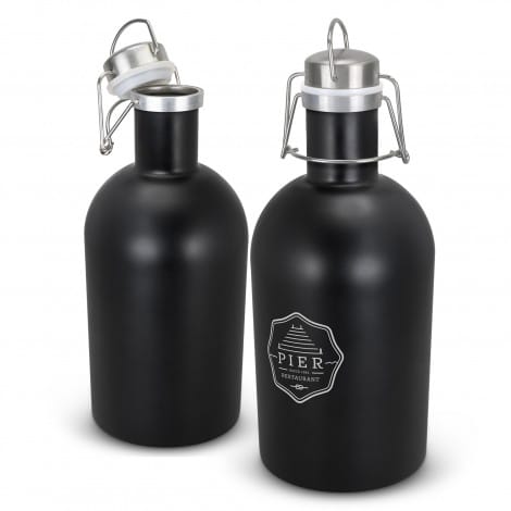 Solid 2L stainless steel growler with a secure spring wire lid which is presented in a black gift box. Laser engraving on this product comes as a stainless steel finish This product is not dishwasher safe, and handwashing is recommended.