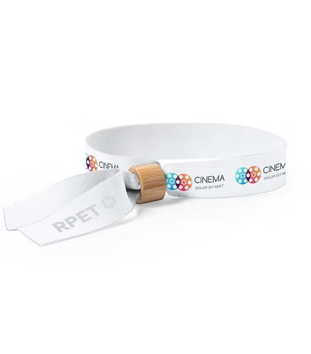• Step up your event game with our eco-conscious wristband, made from 160g/m2 RPET polyester derived from recycled plastic. This sustainable choice not only promotes the reuse of plastic waste but also contributes to the health of our planet. Featuring a stylish bamboo fastener, it comes in a diverse array of colors, with a white option specifically crafted for sublimation printing. Each wristband proudly displays an RPET emblem, showcasing your commitment to environmental responsibility