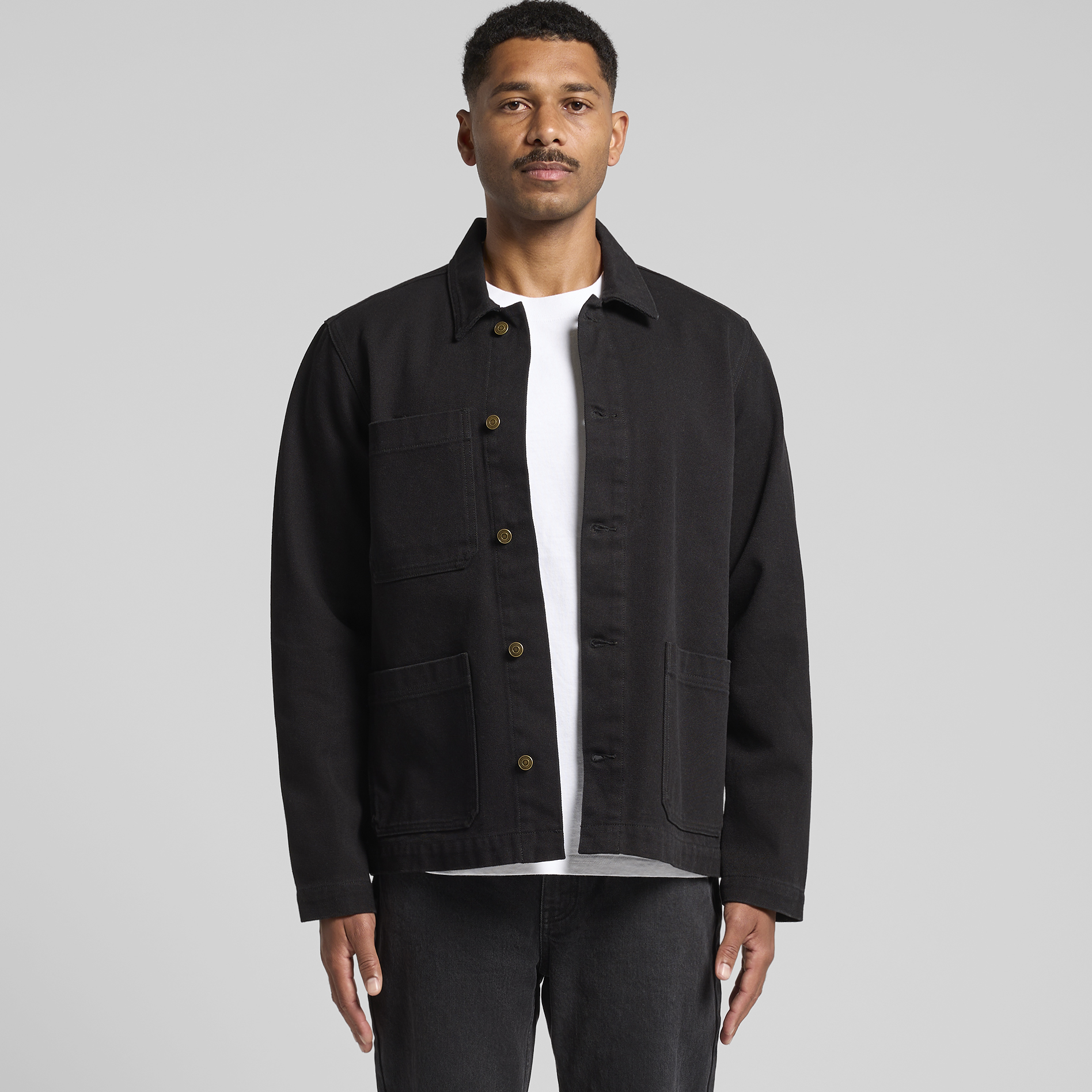 A regular-fit collared shirt jacket made from heavyweight 470 GSM 100% cotton duck canvas, featuring a three-pocket unlined construction with YKK shank button closure.