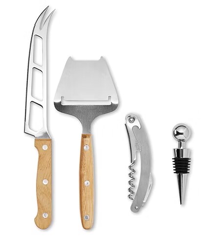 Experience the perfect pairing of elegance and functionality with our Bamboo Cheese and Wine Set. This exquisite set is thoughtfully designed for the cheese and wine aficionado, including a high-quality stainless steel knife ideal for slicing cheese, a cheese peeler for perfect servings, a bottle opener for your favorite wines, and a wine stopper to preserve the essence of your opened bottles.