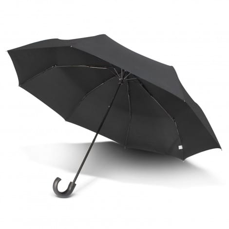 Stay dry in style with the compact, three-stage Colt folding umbrella. It has an eight-panel pongee canopy with a matching sleeve and a hook handle. The canopy is supported by 54cm steel ribs and a steel shaft.