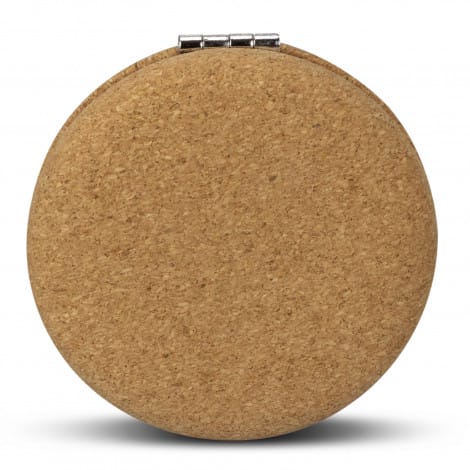 Compact mirror with a hinged cover and natural cork exterior. It features two mirrors one normal, and one two times magnification. When cork is harvested only the outer bark is removed from the tree. This allows the tree to continue growing and replenishing the bark. It also has the benefit of a comfortable soft-touch texture while being very durable.