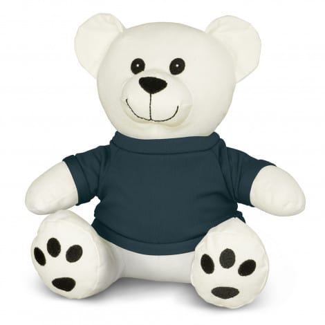 Soft cotton teddy bear with embroidered eyes, RPET filing and an optional polyester t-shirt which is available in eleven colours. This cotton bear is perfect for any occasion and provides a perfect canvas for collecting signatures and personal messages at events and milestones. Plush animals provide a cute and cuddly branding option and are great for brand recognition and spreading goodwill. They have also been manufactured to meet with AS/NZS Safety Toy Standards.