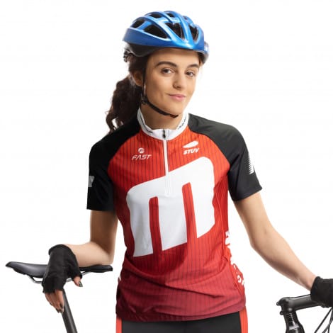 Custom Womens cycling top manufactured from 250gsm, 100% Polyester Lycra.