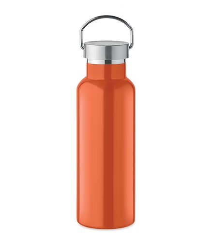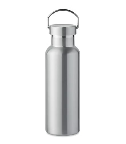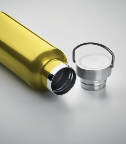 • Embrace Sustainability and Functionality with our Double Wall Insulating Vacuum Bottle, Crafted from 90% Recycled Stainless Steel. This eco-friendly bottle has a 500 ml capacity, ideal for keeping your drinks at the perfect temperature throughout the day. The innovative design includes a lid with a handle for easy carrying, ensuring convenience wherever you go.