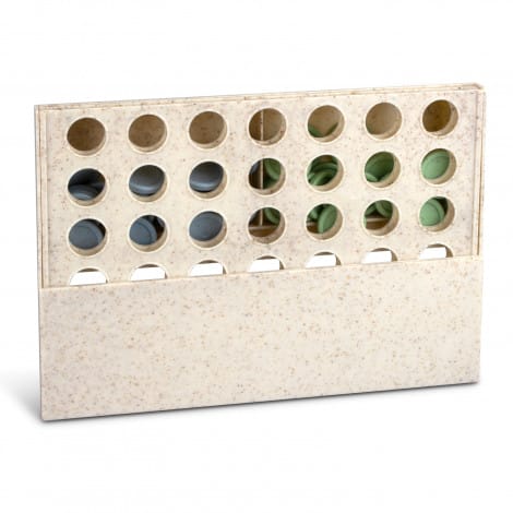 Classic two-player game of four in a row where you are trying to beat your opponent to get four of the same colour dots in a row. The game and instructions are presented in an individual natural box. The game is manufactured from a 50/50 blend of natural wheat straw fibre and BPA-free polypropylene.
