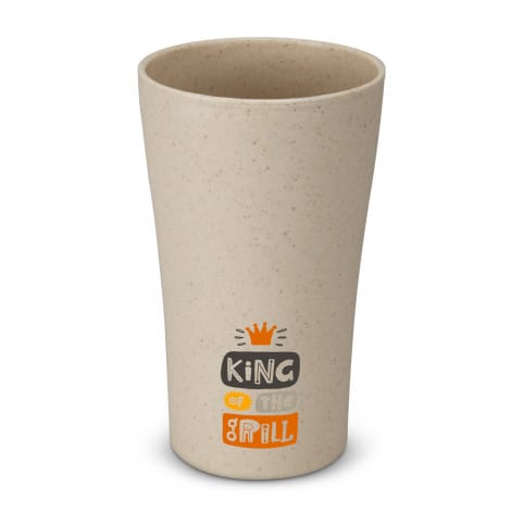 Contoured 300ml cup which is made from a 50/50 blend of natural wheat straw fibre and BPA-free polypropylene. The cup is stackable and reusable – perfect for events or functions. Wheat straw is a waste product with little value and the agricultural industry often dispose of it by burning which creates air pollution. Using waste material to make this cup reduces the amount of plastic and produces a trendy natural look. This product is not dishwasher safe and handwashing is recommended.