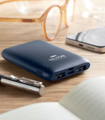 Keep your devices charged with our eco-friendly 5000 mAh power bank, crafted from recycled ABS. Designed for smartphone use, it features multiple outputs: 1 x Type-C, 2 x Type-A, and 1 x Type-B, along with a versatile 2-in-1 Type-C and Type-A input. Perfect for staying connected on the go.