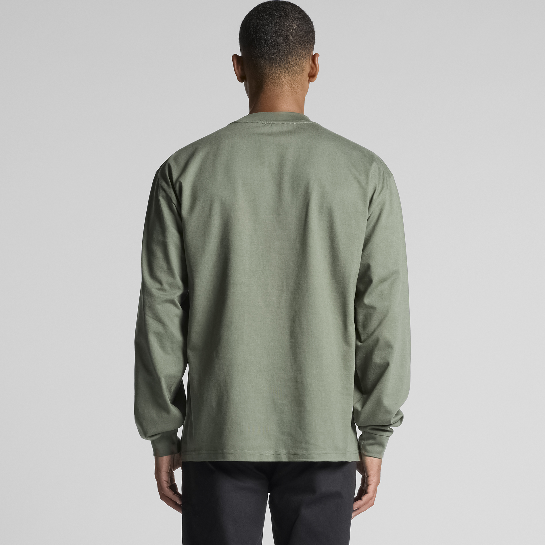 The Heavy Long Sleeve Tee combines a relaxed fit with durable 280 GSM 100% carded cotton, featuring wide neck ribbing, ribbed cuffs, and double needle hems for long-lasting comfort and style.