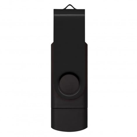 Classic 16GB flash drive with an aluminium swivel and a soft touch rubber lacquered case. It has a USB Type-A connector on one side and a USB Type-C connector on the other. Helix has a read speed of 10MB/s and a write speed of 3MB/s, with data uploading available on request.