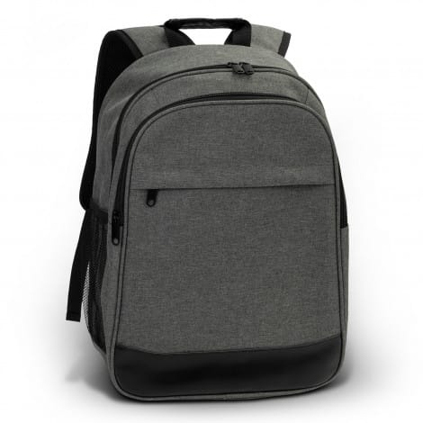 Fashion-Inspired backpack which is manufactured from poly-canvas with an on-trend heather-style finish with a PU strip. It has padded woven straps that are adjustable, a padded back and a padded internal laptop compartment. Other features include a large zippered concealed pocket on the front, two mesh side pockets and a woven carry handle.