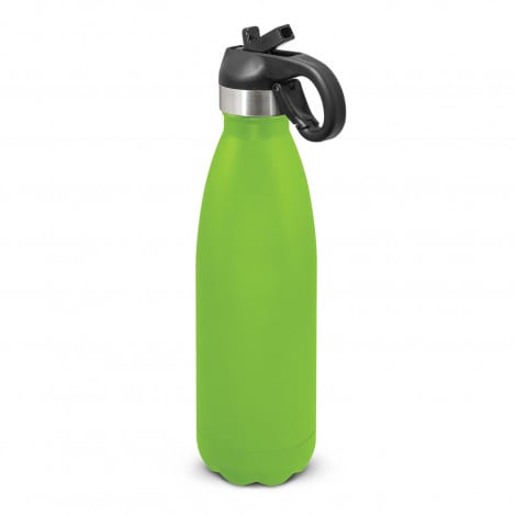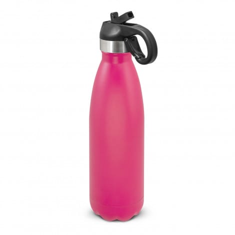 Trendy BPA-free 500ml double wall, vacuum insulated stainless steel drink bottle with a stunning powder coated finish. It will keep drinks cold for 24 hours. Mirage has a secure screw on lid which has a flip out drinking valve with a straw and a removable silicone mouth piece. The lid also has a convenient carry handle with a spring-loaded carabiner clip. Mirage laser engraves to a shiny steel finish and is nicely presented in a black gift box. This product is not dishwasher safe and handwashing is recommended.