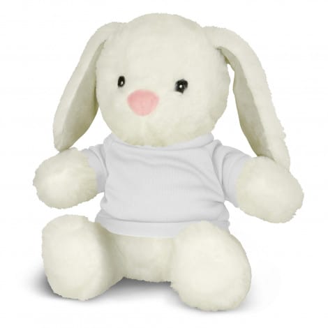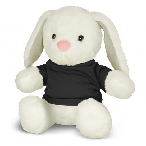 Soft rabbit plush toy with embroidered eyes, RPET filling and a polyester t-shirt which is available in eleven colours. Plush animals provide a cute and cuddly branding option and are great for brand recognition and spreading goodwill. They have also been manufactured to meet AS/NZS Safety Toy Standards.