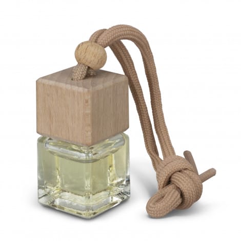 A chic car accessory, this car air freshener contains 8ml of vanilla fragrance in a refillable glass bottle. The natural wooden lid features an adjustable woven tie with a wooden toggle to securely attach the air freshener to the rearview mirror.