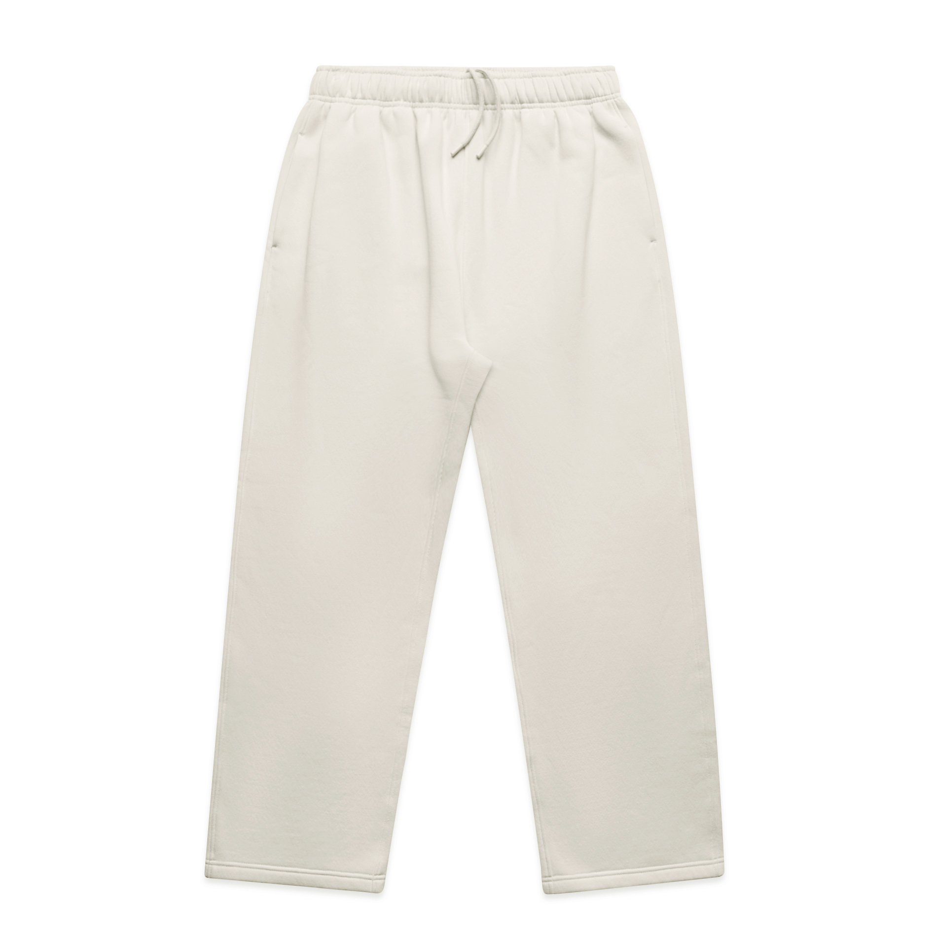 Self-fabric elasticated waistband, cuff less hem, tonal internal draw cord, 2 side pockets, single pocket at back, CVC Fleece, preshrunk to minimise shrinkage