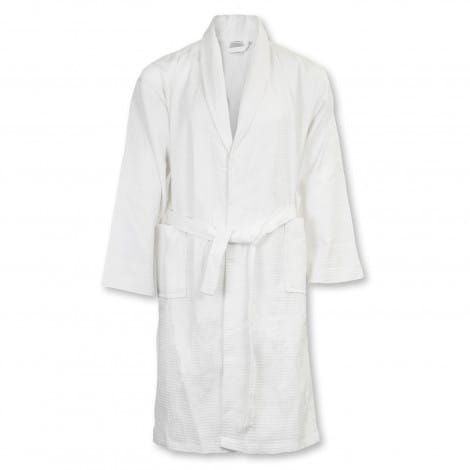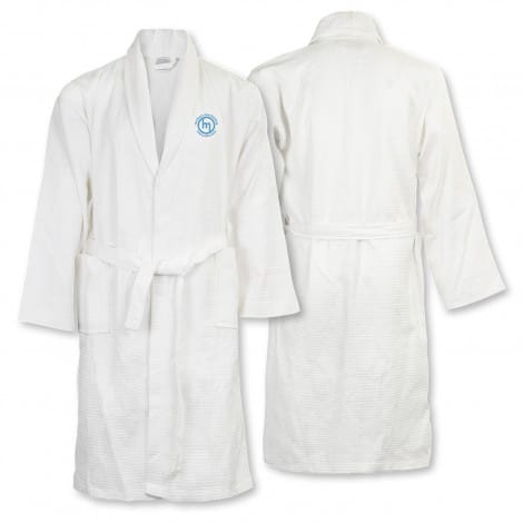 The Rochester Waffle bathrobe is perfect for use year-round. Made from 240gsm 100% cotton in a traditional waffle design. Rochester comes in two sizes. Other features include a shawl collar, waffle waistband, and hoops to keep the belt on and side pockets.