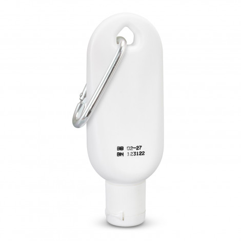 Gel-based SPF50+ sunscreen in a 30ml tube with a carabiner