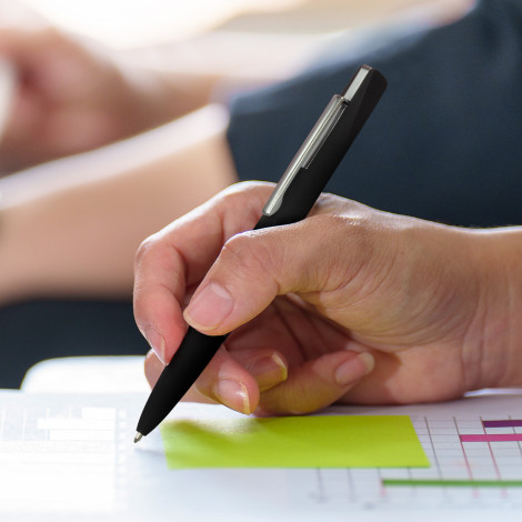 Premium twist-action ballpoint pen that is 100% carbon neutral and is made from recycled stainless steel and ABS. Elegance features a soft-touch rubberised barrel and has 1500m of black Dokumental ink. The lower barrel engraves to a mirror finish. The pen is presented in a SPICE branded paper tube.