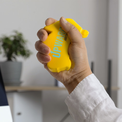Squeezable Australia-shaped stress reliever made from soft polyurethane.