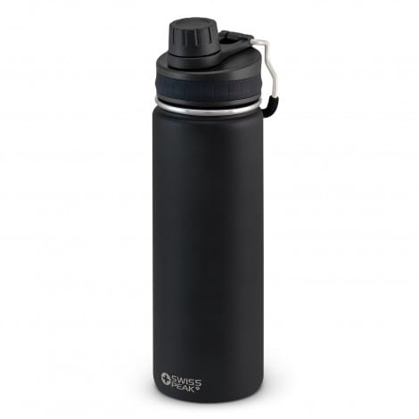 Premium 700ml Swiss Peak vacuum insulated drink bottle that embraces excellence. The stainless steel, double wall construction will keep drinks cold for 24 hours or hot for up to 12 hours. The secure screw on lid has a silicone ring for easy opening, a flip closure and a metal carry handle that features a soft-touch silicone grip. This understated bottle is BPA-free and has a tough powder coating which laser engraves to shiny steel finish. It is beautifully presented in a Swiss Peak gift box with an information leaflet included. This product is not dishwasher safe and handwashing is recommended.