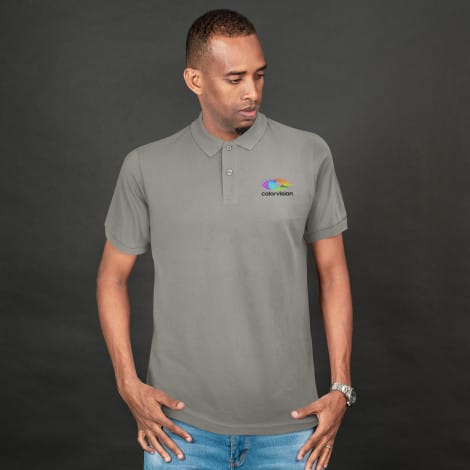 The TRENDSWEAR Carter Men's Polo is made from a breathable 200gsm pique knit blend of combed cotton and polyester, offering a soft fabric with extra durability for regular wear. The ribbed collar and cuffs provide a structured look, while the two-button placket adds classic styling. The fabric is OEKO-TEX Stadard 100 certified, having been independently tested for harmful substances and proven safe for skin contact. Available in eight Australasian sizes.