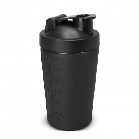 Premium 600ml stainless steel drink mixing shaker with a smart matte finish. It has a secure screw on lid with a snap closure and unique built-in mixing blades which help to break up powder granules. Trojan is designed for measuring and mixing powdered drinks and nutrition supplements and displays both metric and imperial graduations. It is BPA-free, laser engraves to a shiny steel finish and is presented in a black gift box. This product is not dishwasher safe and handwashing is recommended.