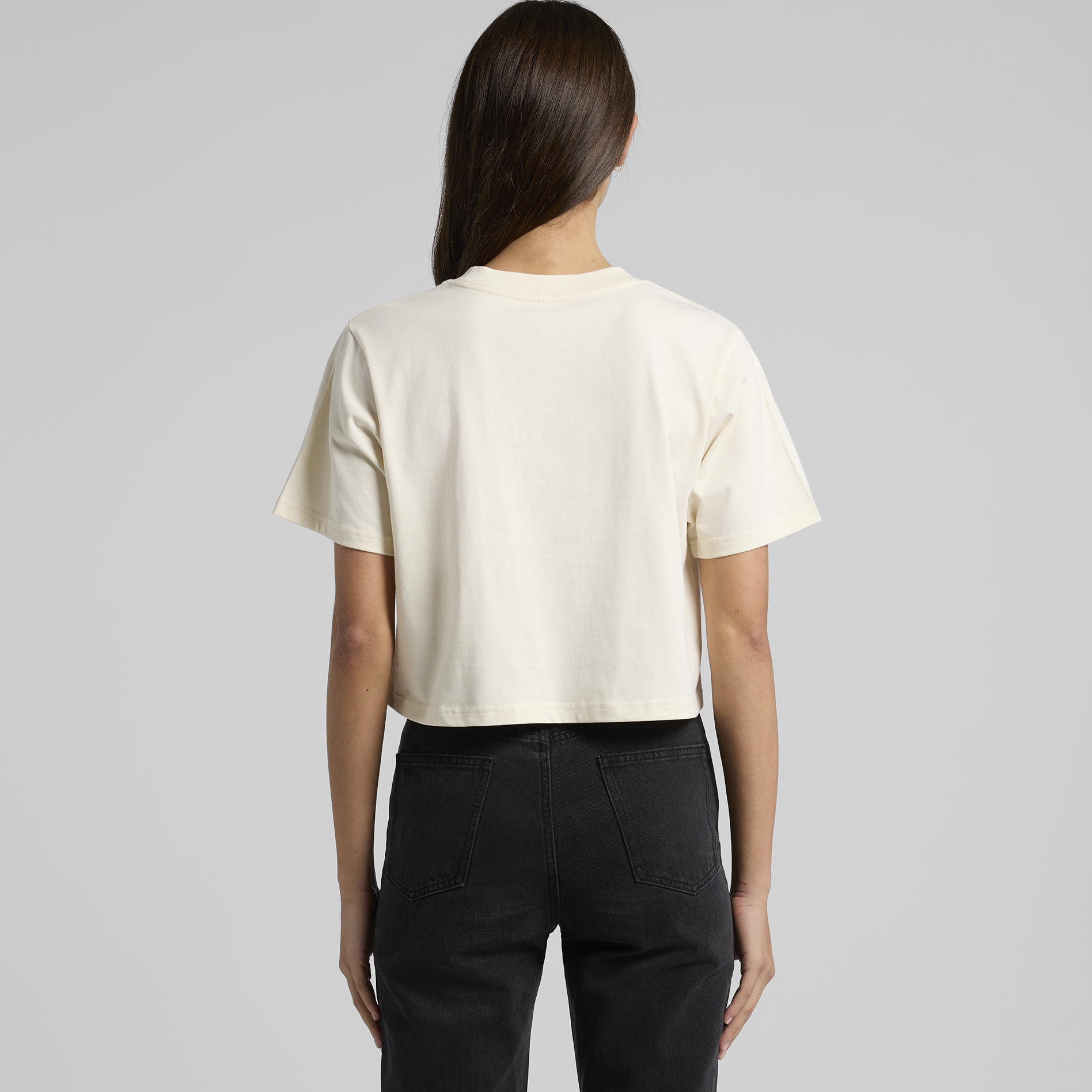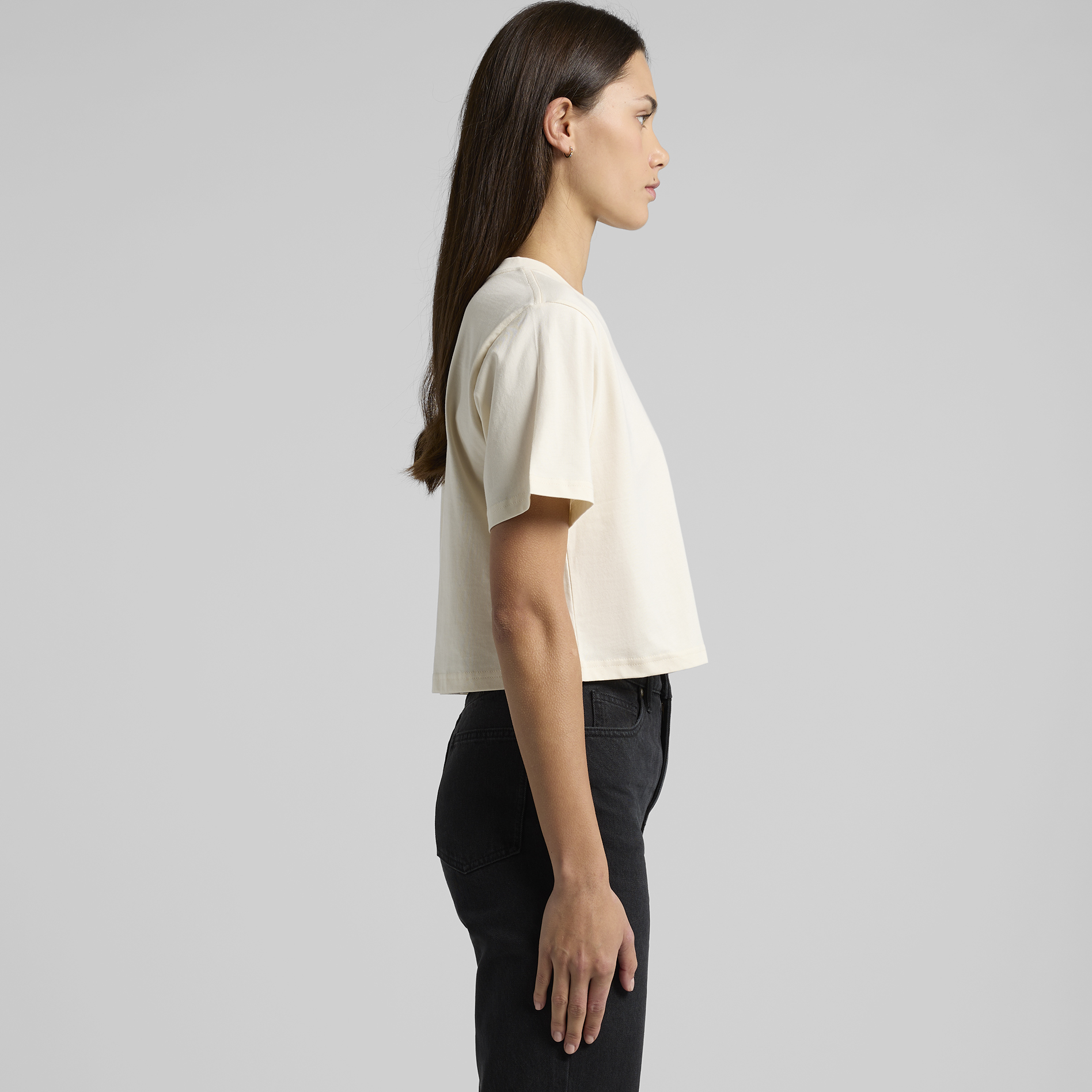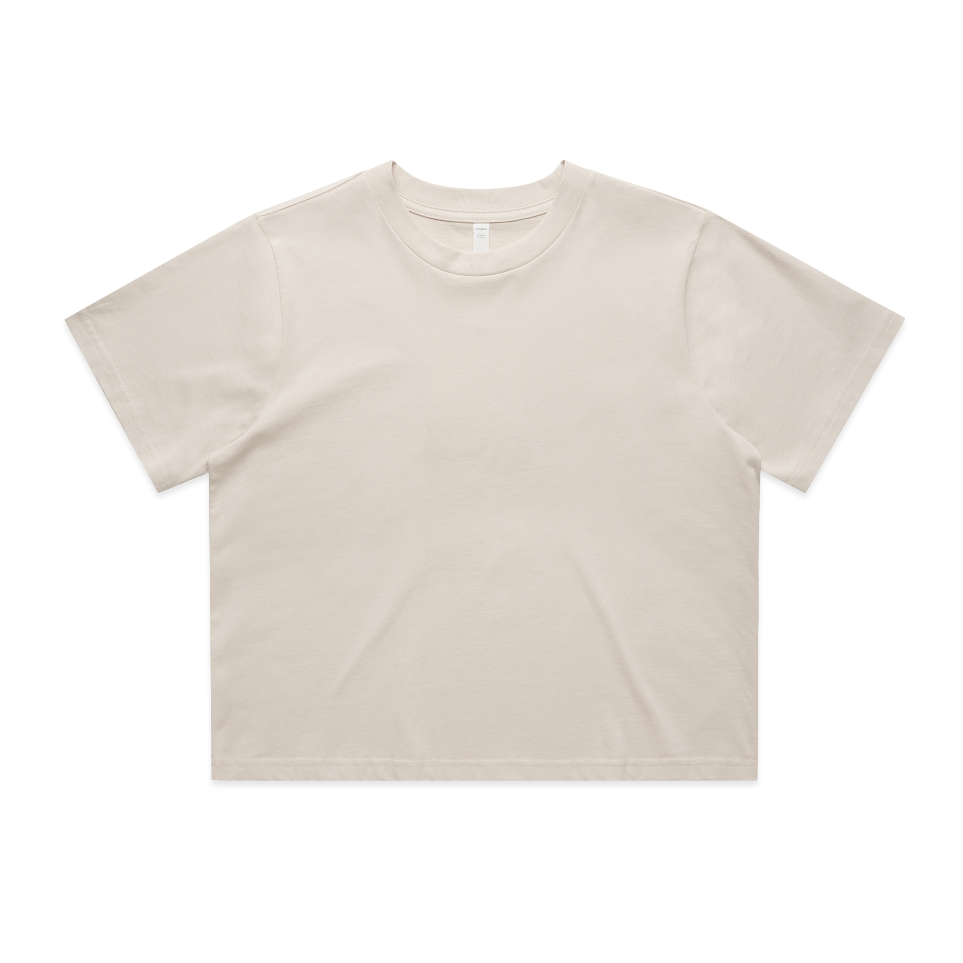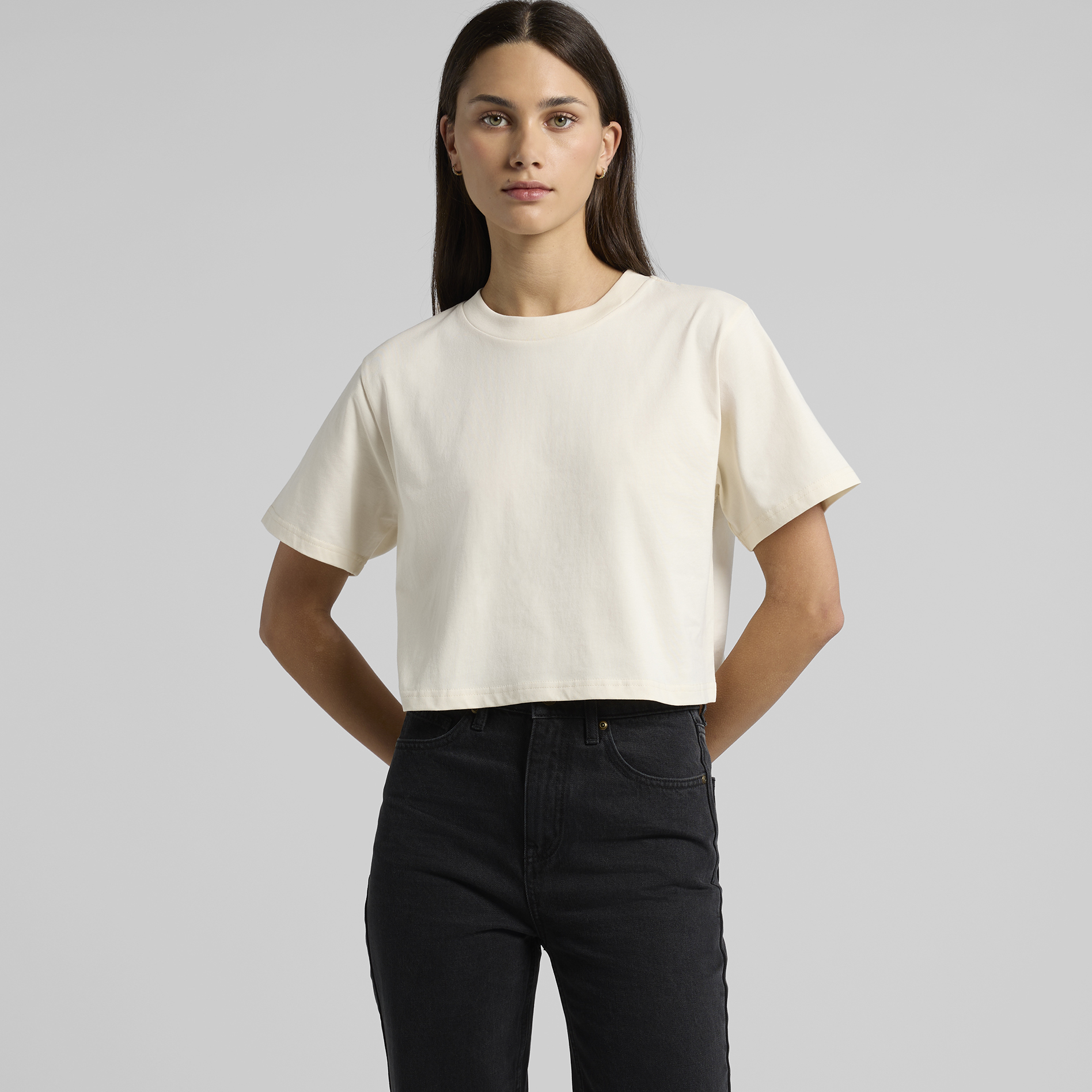 Neck ribbing, cropped full length, side seamed, shoulder to shoulder tape, double needle hems, preshrunk to minimise shrinkage