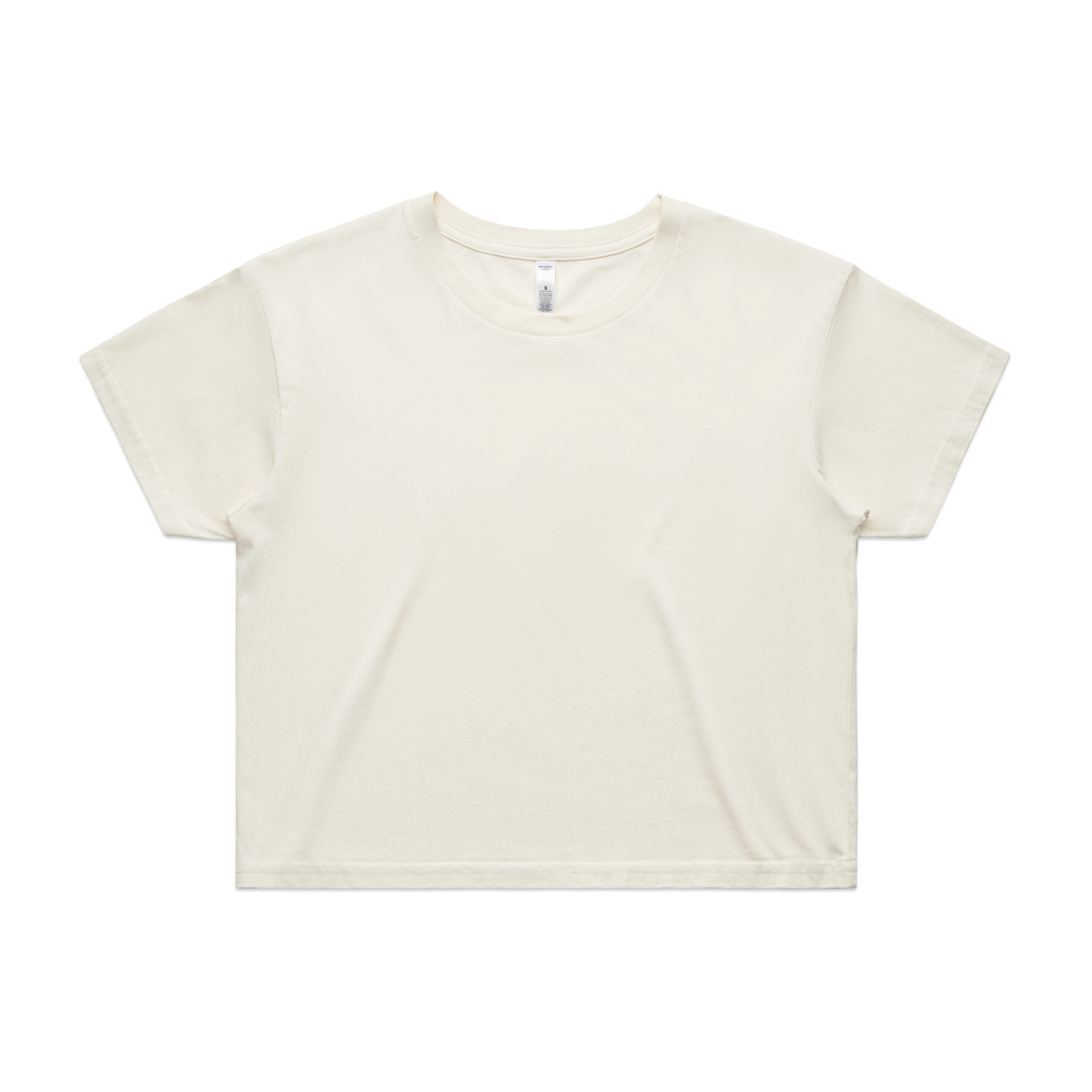 Short body, dropped shoulders, neck ribbing, side seamed, shoulder to shoulder tape, double needle hems, preshrunk to minimise shrinkage