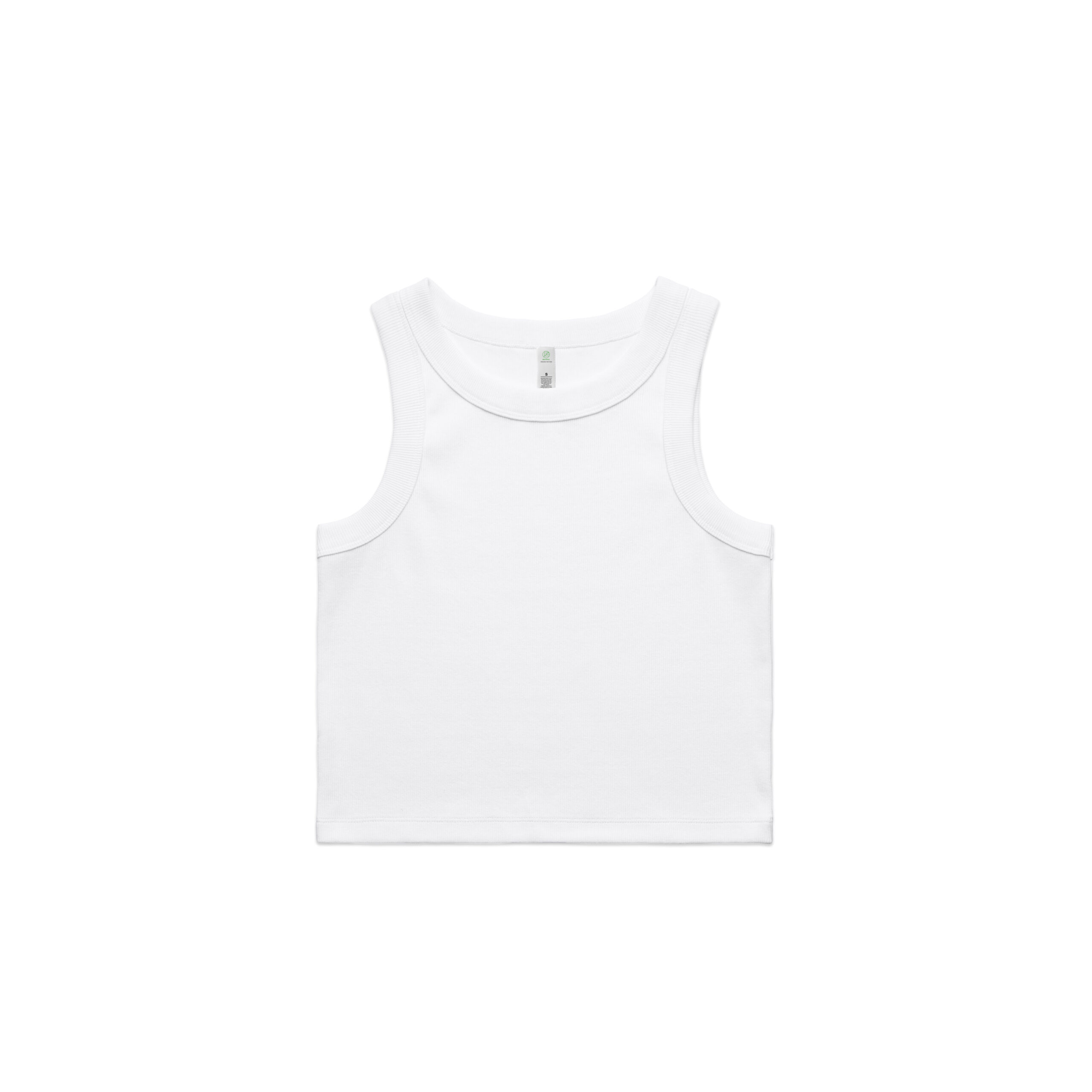 Slim-fit heavyweight cropped top made from 330 GSM organic cotton with 5% spandex, featuring 2×2 rib, wide self-fabric binding, double-needle hem, preshrunk finish, and suitable for screen printing and embroidery.