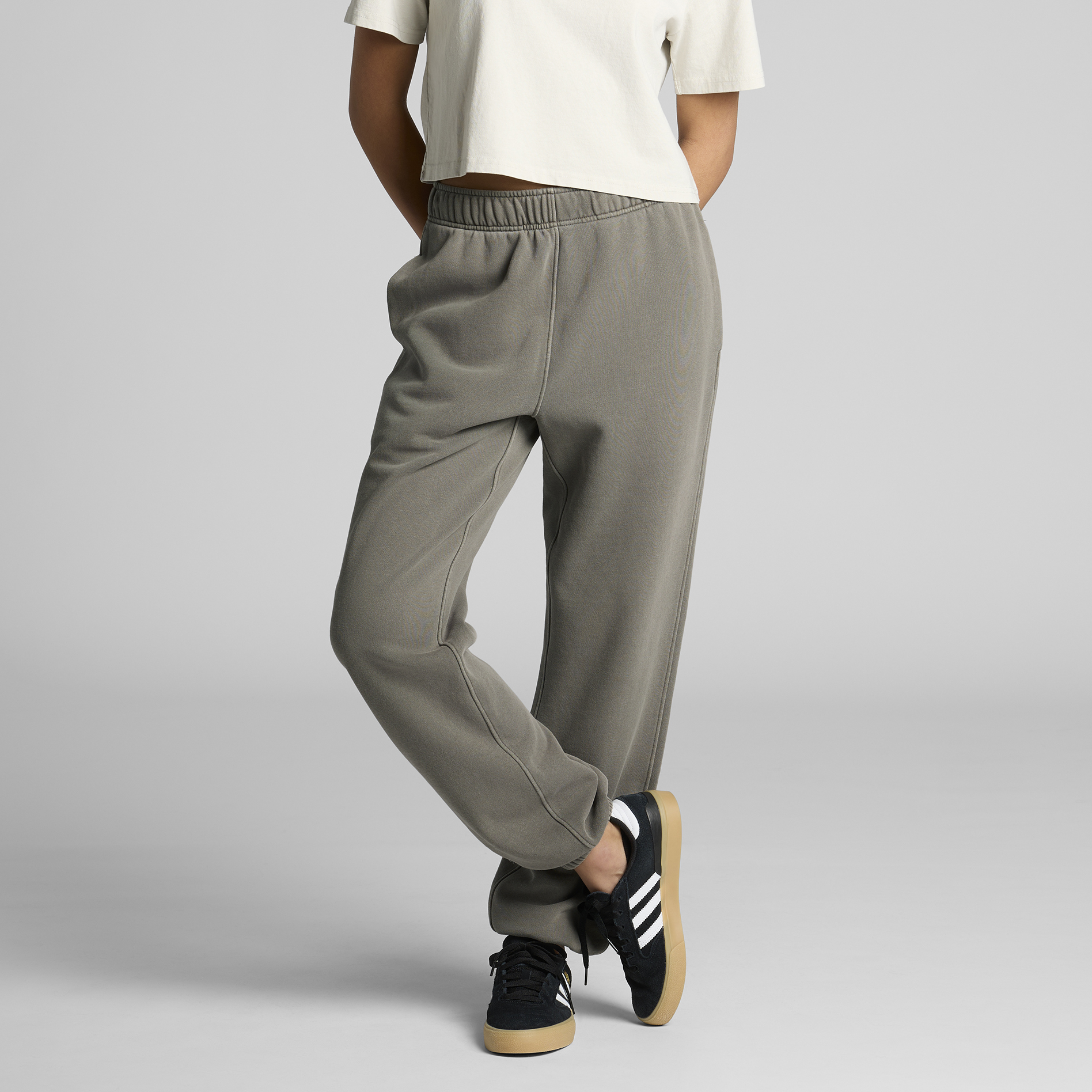 Self-fabric elasticated waistband & hem cuffs, garment dyed, tonal internal drawcord, 2 side pockets, single pocket at back, preshrunk to minimise shrinkage.